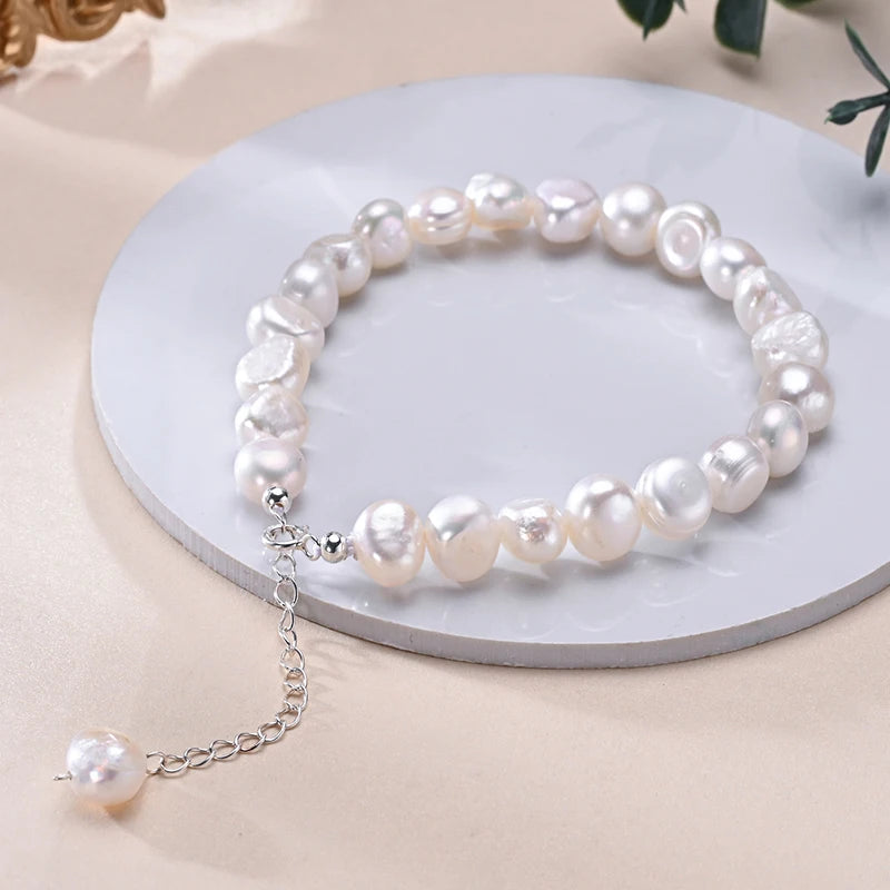 Elevate your style with Classics 925 Sterling Silver Freshwater Baroque Bracelet, a stunning piece of fine jewelry that captures the essence of elegance and grace. Featuring exquisite 8-9mm white freshwater pearls, this bracelet blends modern design with classic sophistication. The unique baroque shapes of the pearls create a captivating texture, making each piece truly one-of-a-kind. Perfect for women and girls who appreciate timeless beauty, this bracelet makes a delightful gift for any special occasion.